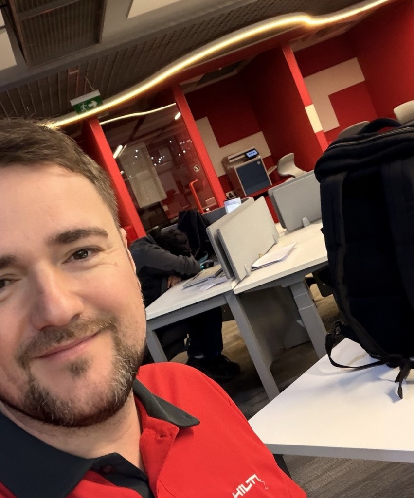 Die Arbeit bei Hilti ist anstrengend und macht müde, bereits am frühen Morgen… (man achte auf den Hintergrund 😉)