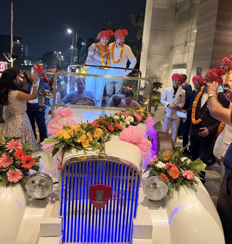 Abends brechen wir zum Supermarkt auf, kommen aber nicht weit, da wir vor dem Hotel in eine Hochzeits-Zeremonie geraten und plötzlich ungewollter Mittelpunkt davon werden. Tanz in der Menge, anschließend werden wir mit Turbanen ausgestattet und auf den Hochzeitswagen bugsiert.