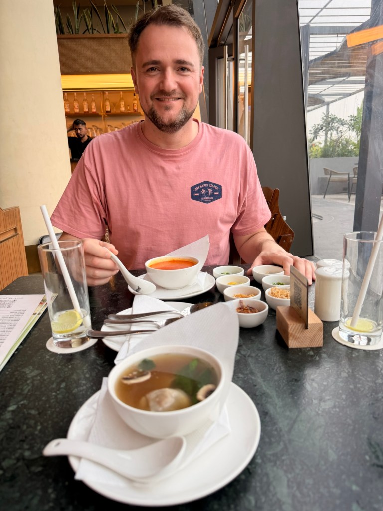 Nach Feierabend ist die letzte Wohnungsbesichtigung angesetzt, wir brechen um 18 Uhr auf, plötzlich ruft der Makler an, dass sich die Besichtigung verspätet, weil der Eigentümer sich in einem spirituellen Ritual befindet. 20:00 warten wir immer noch auf den Anruf des Maklers und gehen erstmal zum Abendessen…