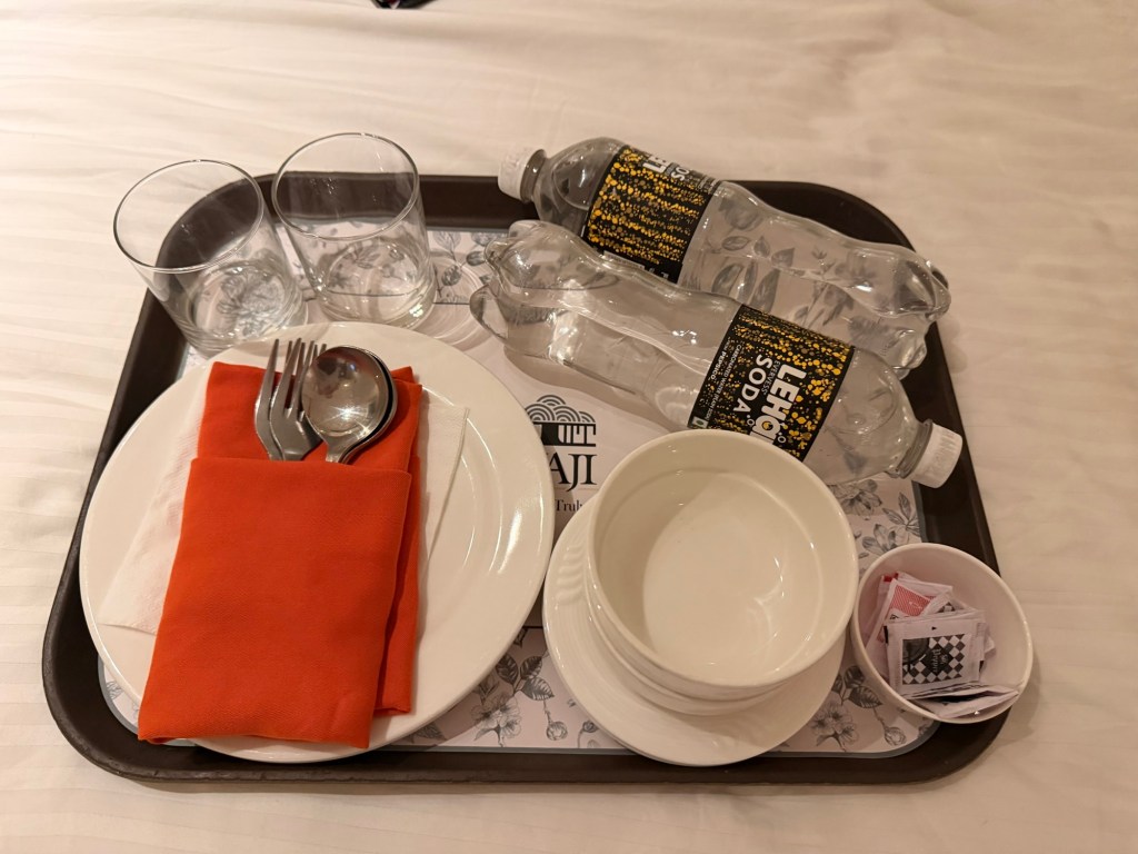 Nach einem unaufgeregten Arbeitstag Abendessen per Room Service bestellt, Geschirr und Getränke kamen an, leider fehlte aber das Essen… Auf Nachfrage wurde es 15 Minuten später nachgeliefert.