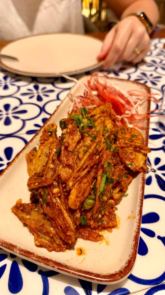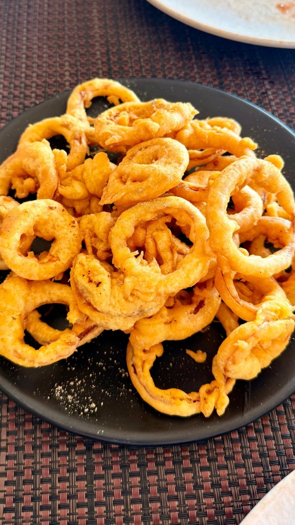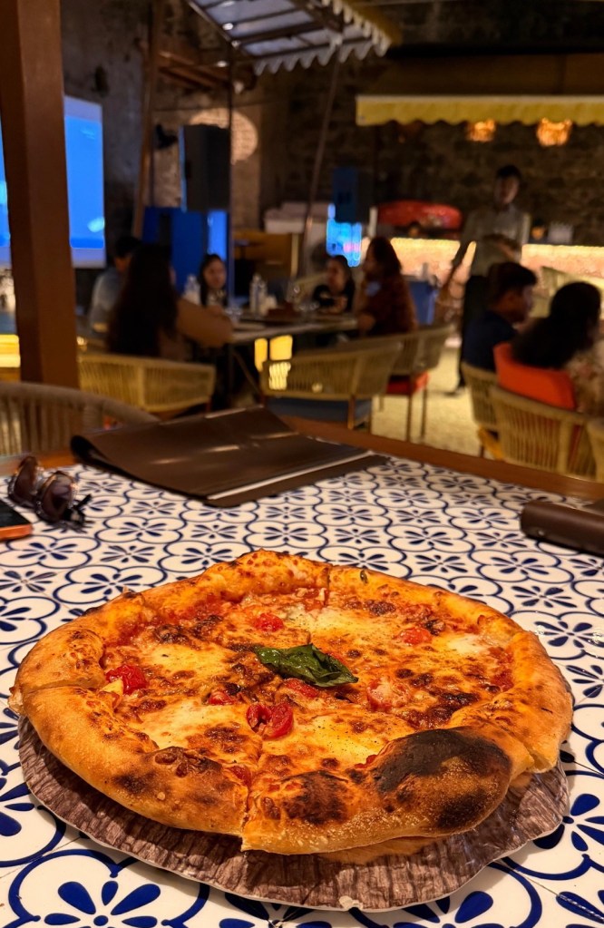 Zielsicher haben wir eines der alkoholfreien Restaurants ausgesucht. Da das Essen jedoch sehr gut aussieht, bleiben wir und verschieben unseren Drink auf später. Der Verzicht hat sich gelohnt. Es gab frittierte Lotus-Stiele (unglaublich gut!), Gemüsebällchen und eine sehr schmackhafte Pizza mit Büffelmozzarella.