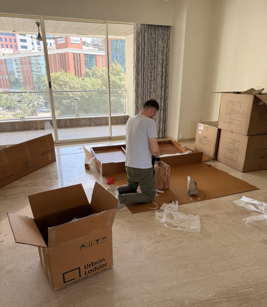 Gegen Mittag klingelt es an der Tür und zu unserer großen Freude und Überraschung wird unser Bett geliefert! Cliff macht sich direkt ans Werk und baut es auf. Wir sind sehr zufrieden mit unserer Auswahl.