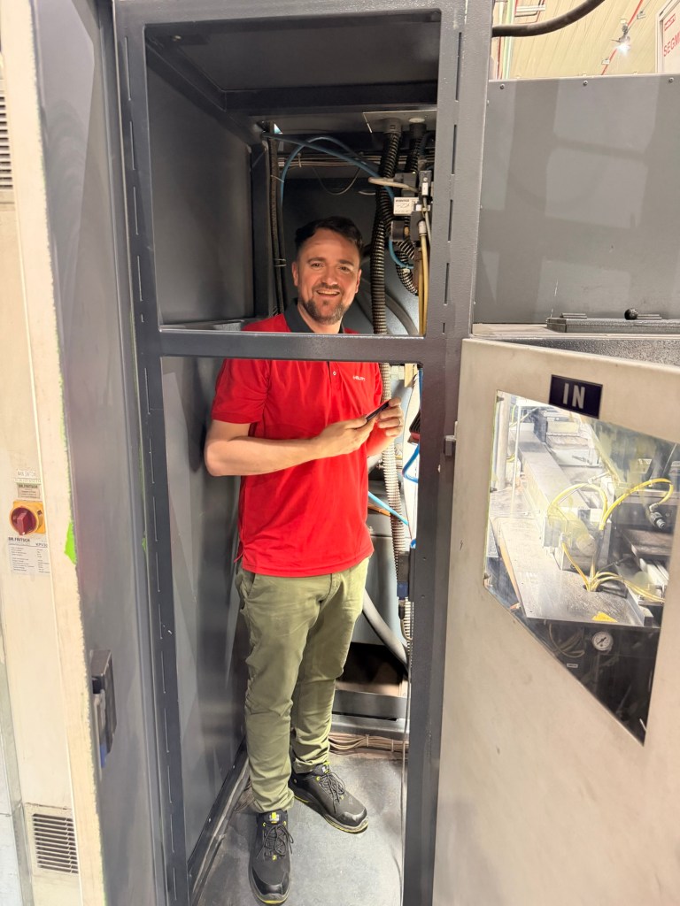 Heute hilft Cliff in der Prototypen-Werkstatt, unsere Anlagen auf Vordermann zu bringen. Wie immer ist er mittendrin statt nur dabei und mit vollem Elan am Werk.