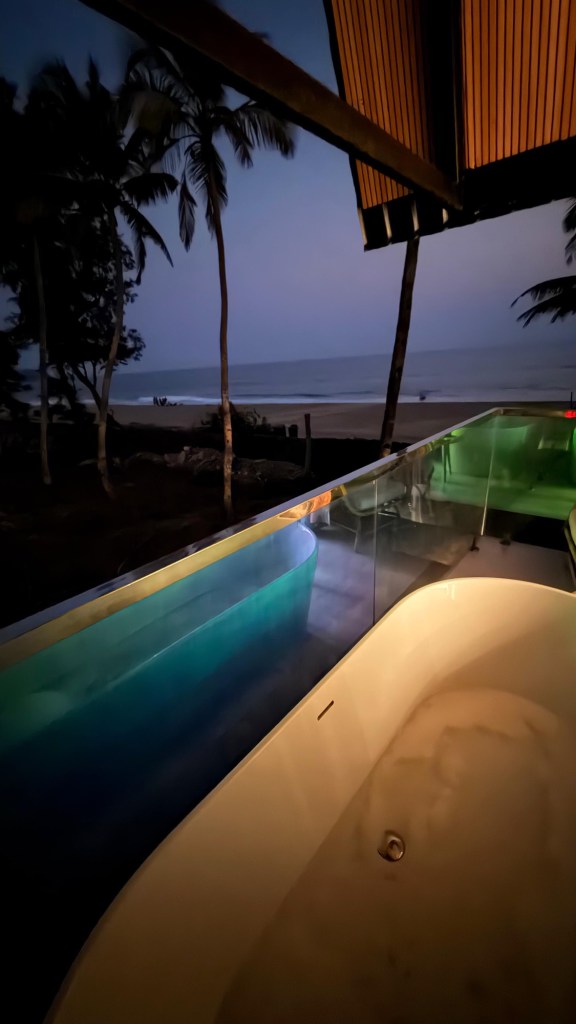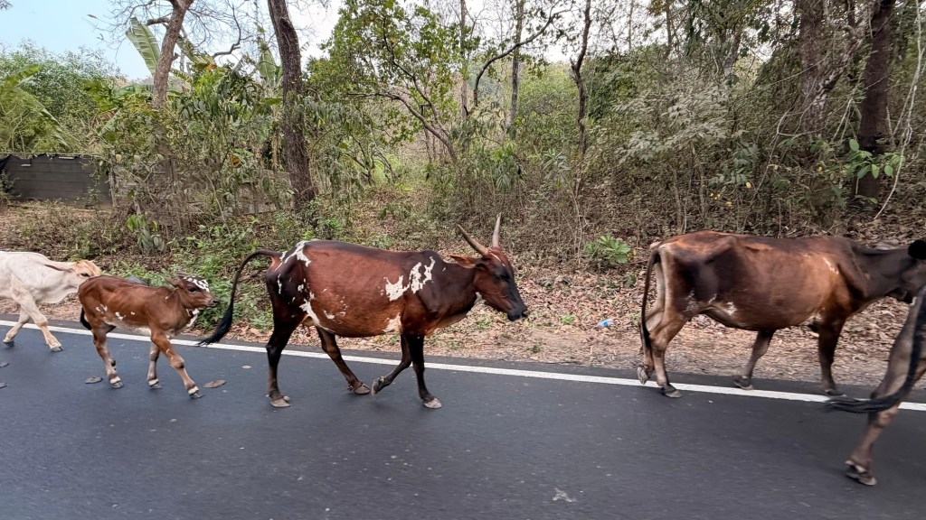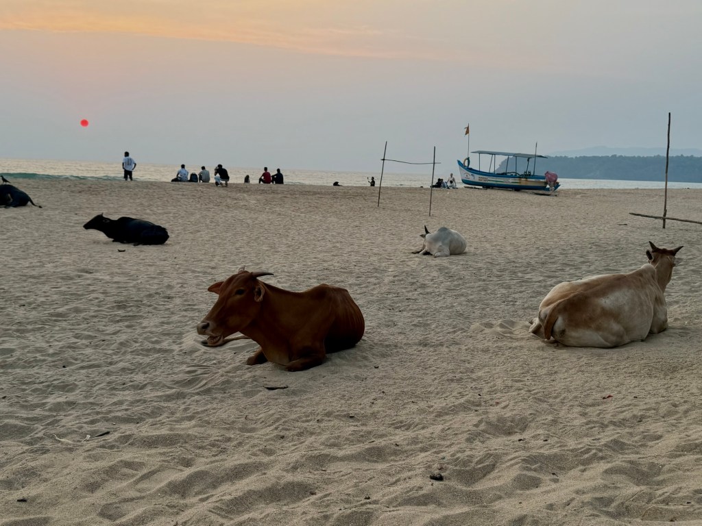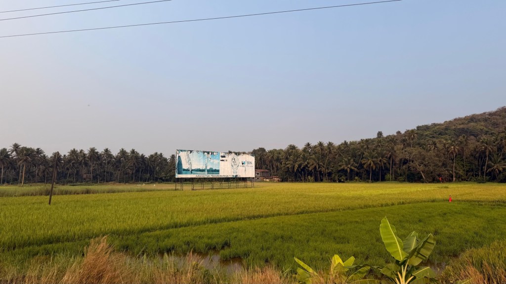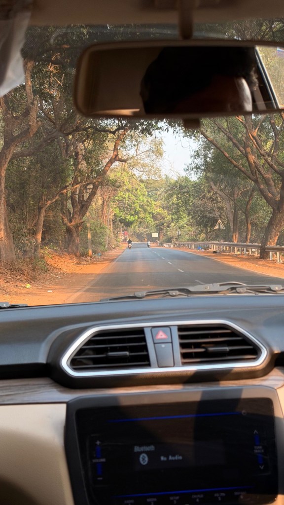 Nach 1,5 h Flugzeit kommen wir in Goa an. Von dort aus geht es noch 2 h weiter mit dem Auto bis zu unserer Unterkunft. Wir haben ein Shuttle über das Hotel bestellt, welches uns bestätigt, dass der Fahrer am Ausgang auf uns warten wird. Vom Fahrer keine Spur, nach 30 Minuten kommt er endlich an, wir sind beide recht sauer und Cliff lässt es den Fahrer deutlich spüren, er verbietet im sogar das Telefonieren und Chatten während der Fahrt, was in der indischen DNA tief verankert und eigentlich nicht wegzudenken ist. Während der Fahrt beruhigen sich die Gemüter wieder, Cliff und der Fahrer freunden sich an und zum Abschied gibt es sogar eine Umarmung.🙂
