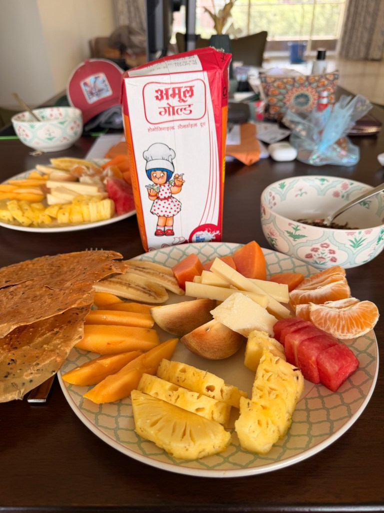 Wieder zu Hause angekommen, bestellen wir uns aus dem Bett heraus unsere Wochenendeinkäufe, die 15 Minuten später geliefert werden. Wir lassen den Abend mit heimlich aus Goa geschmuggeltem Wein (Gujarat ist ja ein Dry State, in den man keinen Alkohol einführen darf 😇) und einem kleinen Snack ausklingen und freuen uns schon auf die neue Woche, die vor uns liegt, da wir nun endlich unsere Wohnung vollständig einrichten können.