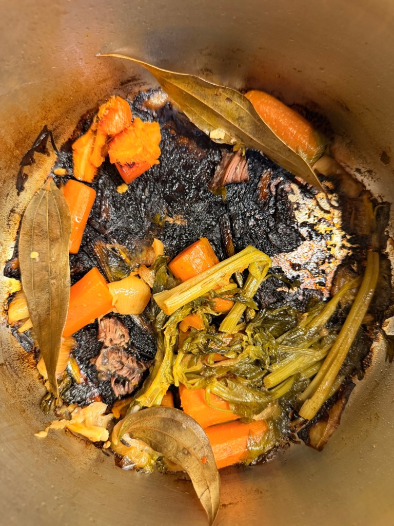 Parallel dazu bereitet Isi einen Lammbraten zu, der bereits seit 2 Tagen in Quark badete und den es morgen zum Essen geben sollte. Das Ergebnis: