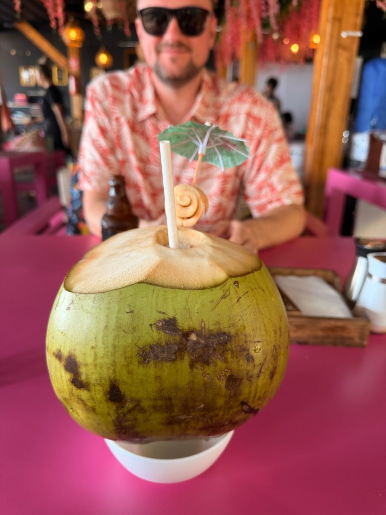 Vormittags kommen Kollegen vorbei und bringen selbstgeernteten Toddy, einen Palmsaft, der über den Tag so schnell vergärt, dass er bereits nach wenigen Stunden der Ernte einen bierähnlichen Alkoholgehalt hat. Nach ein paar wenigen Schlücken beschließen wir, dass der Palmwein nichts für uns ist und schütten ihn, nachdem unser Besuch weg ist, heimlich in den Abfluss. 🤫