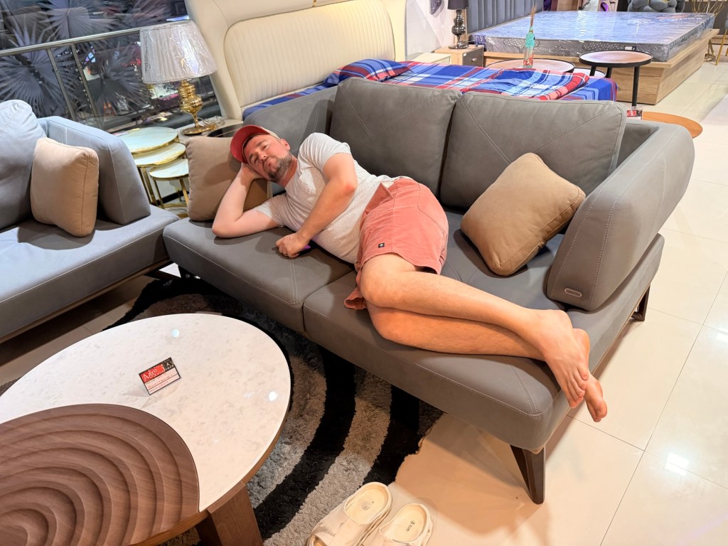 Um 17 Uhr landen wir wieder in Vadodara. Nach einem kurzen Zwischensnack brechen wir auf, um uns einen Fernseher zu kaufen und ein Sofa auszuwählen. Der Fernseher wird morgen gegen Mittag geliefert, für das Sofa nehmen wir uns Stoffproben aus dem Laden mit, da wir uns mit der Farbe unschlüssig sind.