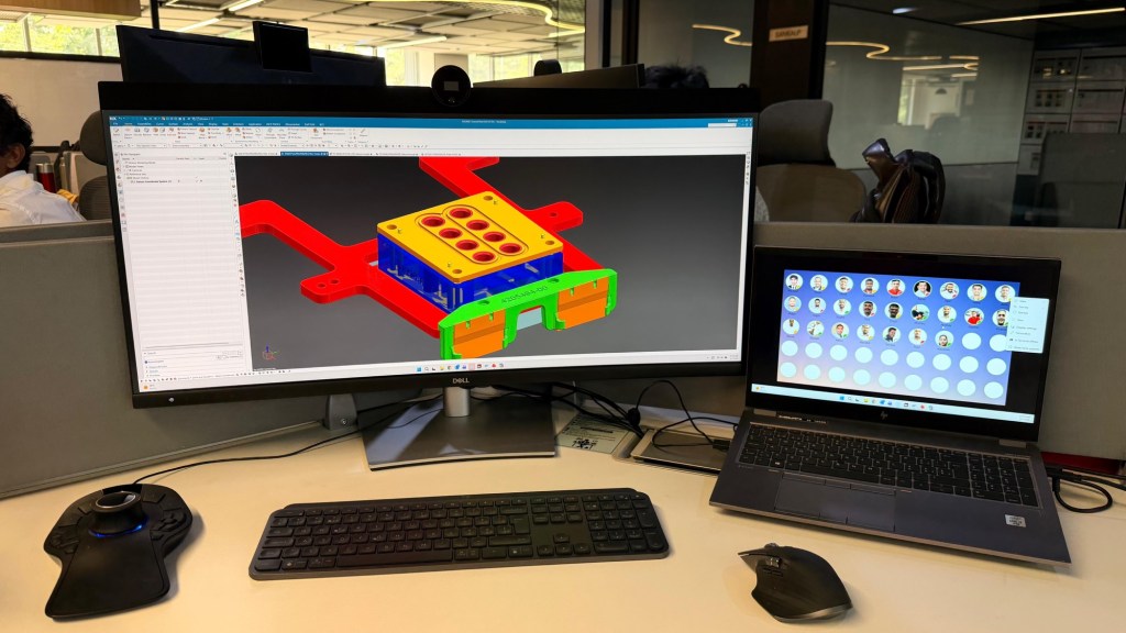 Seit heute hat Cliff endlich einen Monitor an der Arbeit, nachdem er die letzten 3 Monate seine Konstruktionen immer auf dem kleinen Laptop-Bildschirm machen musste.