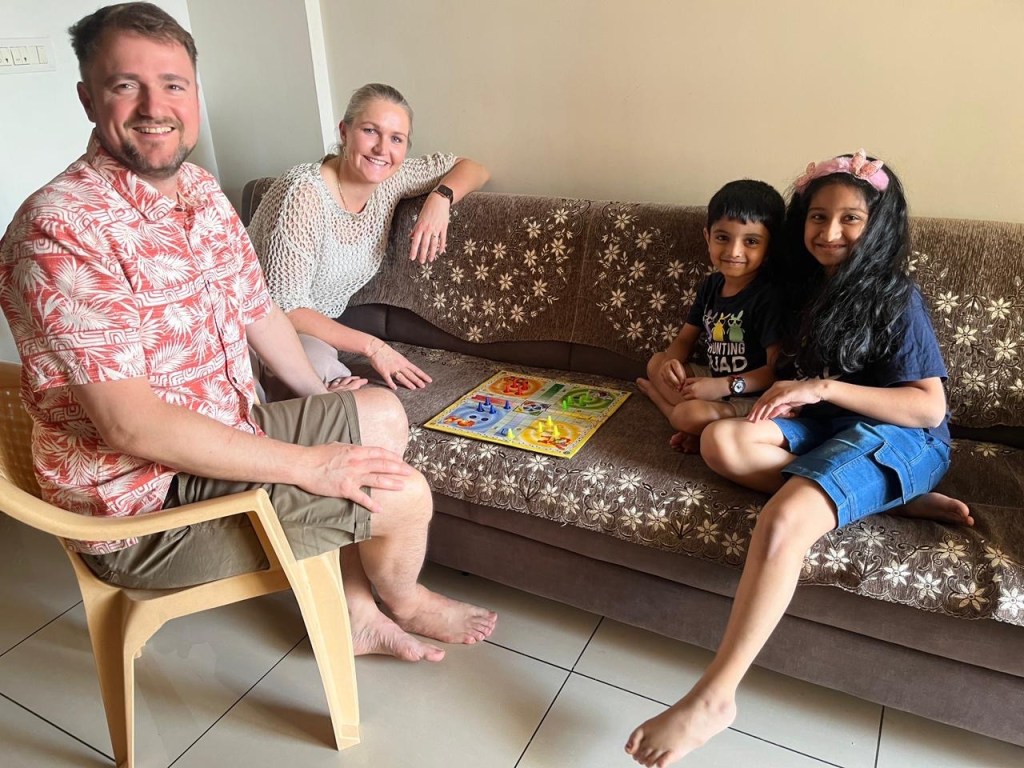 Die indischen Familien leben üblicherweise mit 3 Generationen in einem Haushalt. Hier lebt noch der Vater von Harshit mit in einem 3-Zimmer-Haushalt.