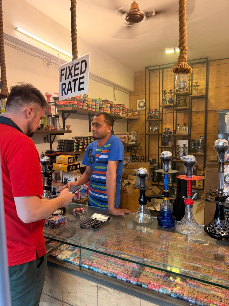 Nach der Arbeit geht es in einen Tabakshop, um etwas Zubehör für unsere Wasserpfeife für das nächste soziale Event zu kaufen. Cliff‘s Handel-Instinkt ist mal wieder geweckt, das Schild vor seinem Kopf ignoriert er gekonnt, der Eigentümer bleibt aber hartnäckig und rückt nicht von seiner Preisvorstellung ab. Auch ein Handelkönig muss sich hin und wieder geschlagen geben.