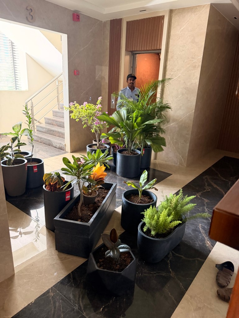 Alle packen mit an und nach 15 Minuten haben wir alle Blumen in unserer Wohnung.